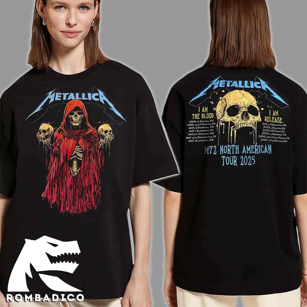 Metallica M72 Tour T Shirt North American Tour 2025 Dates List Skeleton Witch I Am The Blood I Am Release Merchandise